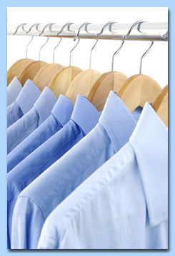 Oberhemden werden wie zu Großmutter's Zeiten gewaschen, auf Wunsch gestärkt und komplett von Hand geplättet.